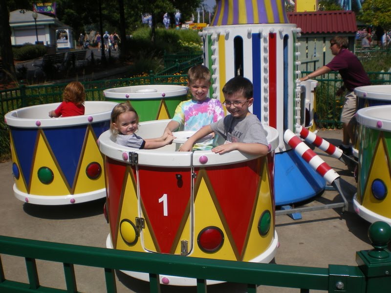 While Josh and I were on the coaster, Jake took Kate on the car ride. It may look like no one is driving, but look closer. You'll see a little head poking just above the steering wheel. Kate was driving and loving every minute of it!